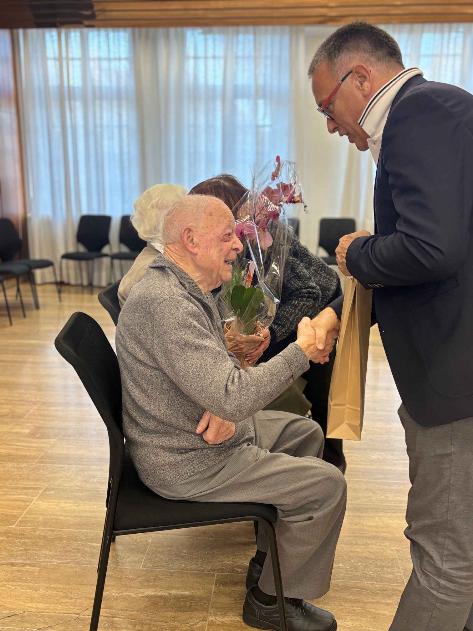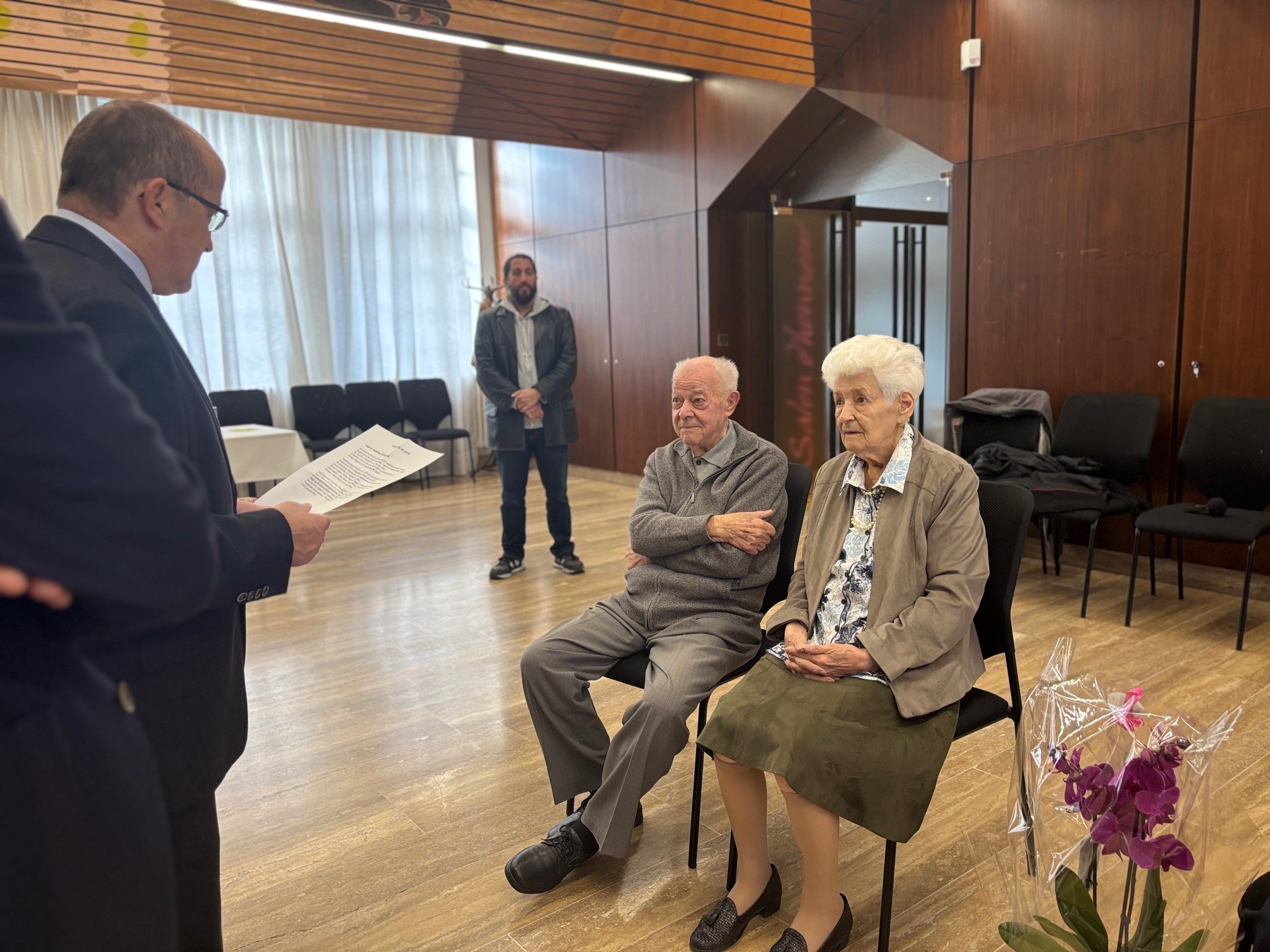 Entre discours émouvants retraçant leurs parcours de vie, fleurs et chocolats offerts par la municipalité, et un goûter convivial partagé en toute simplicité, la cérémonie a été un véritable moment de partage et de tendresse.