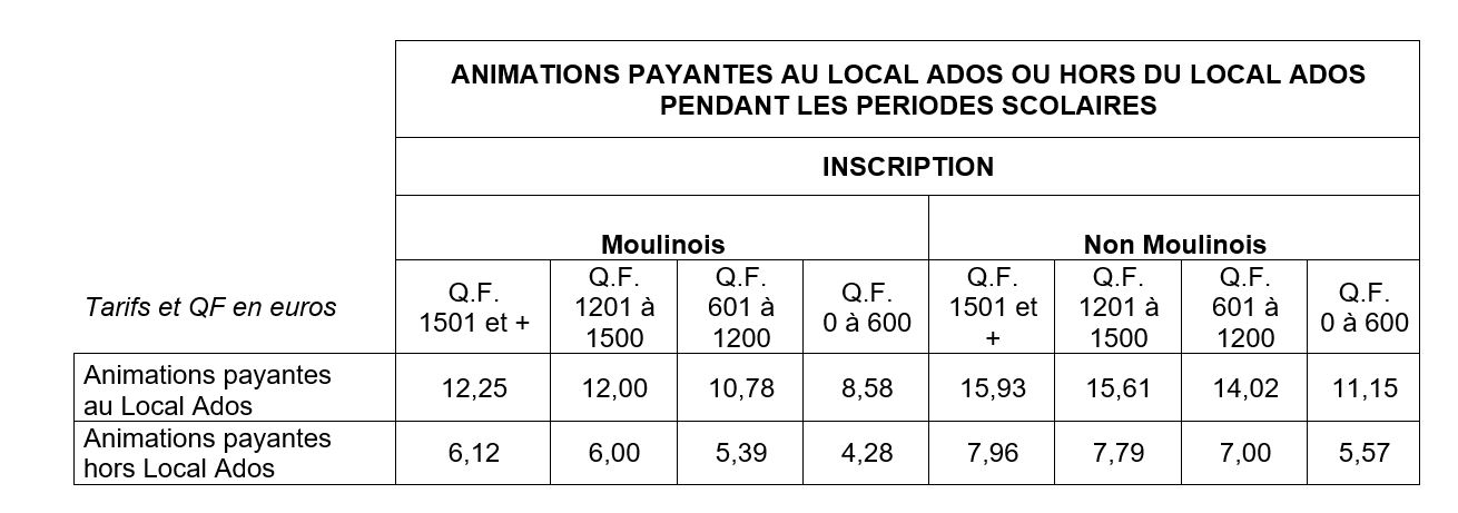 Les Animations Ados proposent un service de loisirs adaptés aux jeunes moulinois et non moulinois scolarisés dans un collège de la commune et/ ou âgés de moins de 18 ans.